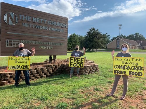 Signs on the street are critical to bring guests in for dinner, We have signs in English, Spanish and Vietnamese - the languages of our Campus congregations.